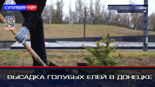 Высадка голубых елей в Донецке