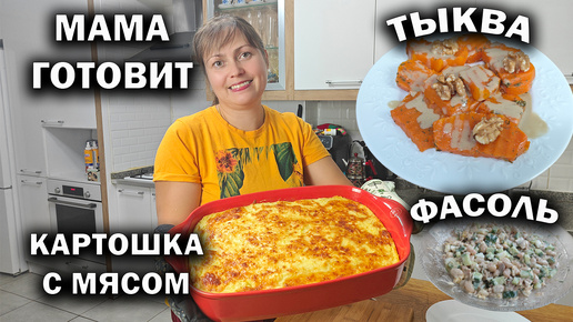 ПРИГОТОВИЛА вкусно - ТЫКВА на сковороде. УЖИН ОТ МАМЫ: картошка с мясом, салат из фасоли #рецепты