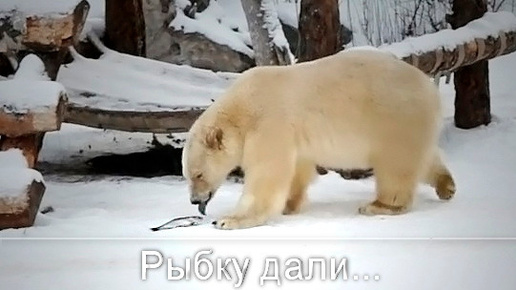 Медвежата Белка и Стрелка дождались, когда их покормят и даже нам показали рыбку.