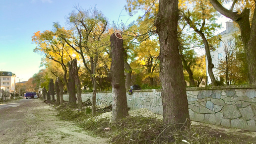 Обновление Феодосии с раздеванием догола! Аж щепки летят!… Вторая половина ноября 2024 год. Деревья летят не из-за непогоды, а из-за пилы!…
