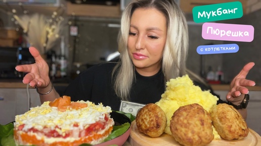 Мукбанг/Пюрешка с котлетами🥩Салат красной рыбой и маринованным луком