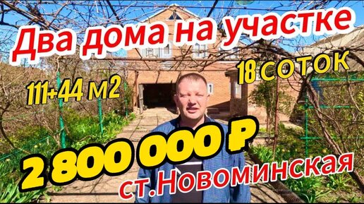 Цена ниже!Два дома на участке 111+44м2🦯18 соток🦯газ🦯вода🦯2 800 000 ₽🦯станица Новоминская🦯89245404992