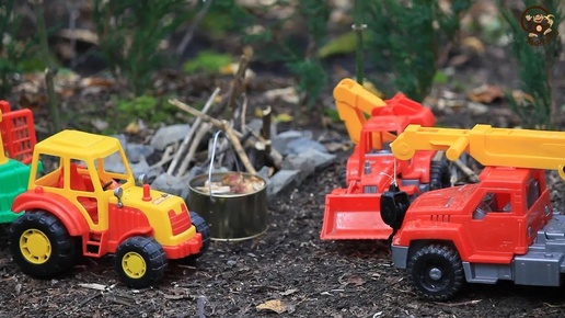 Мультик про машинки. Экскаватор, Автокран и Трактор собирают грибы. МанкиМульт