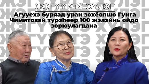 Жэгүүртэ хүлэг. Агууехэ буряад уран зохёолшо Гунга Чимитовай түрэhөөр 100 жэлэйнь ойдо зорюулагдана