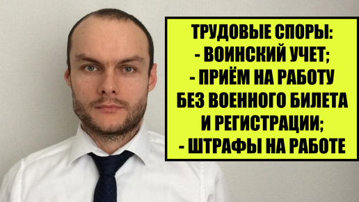 Трудовые споры: Воинский учет. Приём на работу без военного билета и регистрации. Штрафы на работе. Юрист. Адвокат