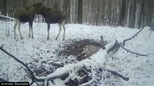 Могучие лоси устроили любовь в лесу Башкирии! Самцу очень нравится, как самка трется о его морду.