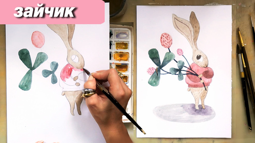 Как нарисовать зайца акварелью, пошаговый урок для детей и взрослых