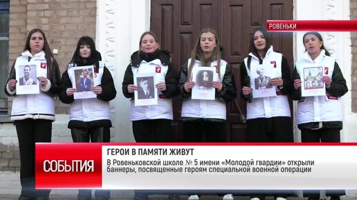 ТК "Родной". В Ровеньковской школе № 5 имени «Молодой гвардии» открыли баннеры, посвященные героям специальной военной операции