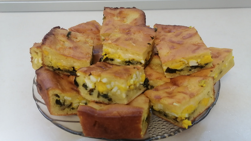 Заливной пирог с зелёным луком, сыром и яйцом