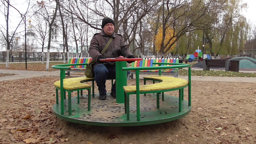 Карусель в парке. Геннадий Горин катается на карусели