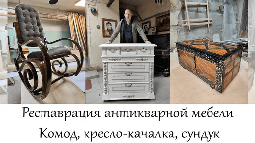 Реставрация антикварной мебели: комод, кресло-качалка, сундук в мастерской "Три Художника" в Нижнем Новгороде