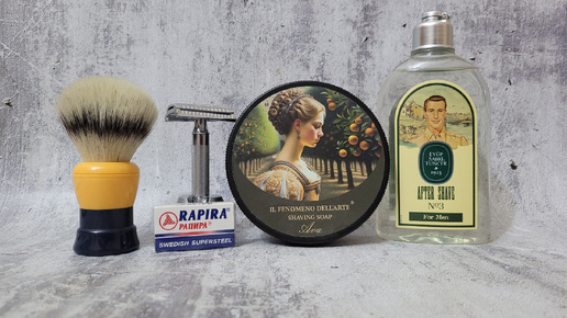 Далее: Регулируемая бритва и помазок Tatara Muramasa, мыло Sayama Kaori, а/ш Samurai Fire, лезвия Feahter
