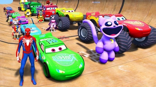 SPIDERMAN CARS Racing Challenge on Parkour Rampa ! SUPERHERO HULK Iron Man Goku Race Car GTA 5 MODS