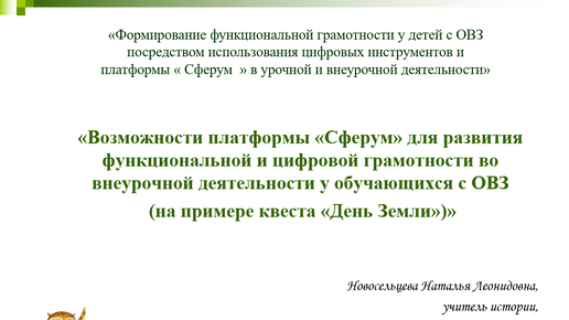 Возможности платформы Сферум во внеурочной деятельности у обучающихся с ОВЗ на примере квеста День Земли.