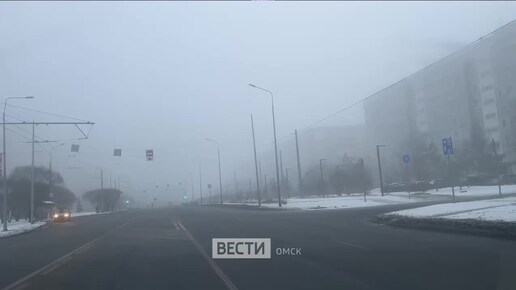 Омск накрыл густой туман