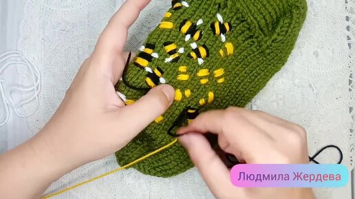 Как вышить пчелок на вязаных носочках