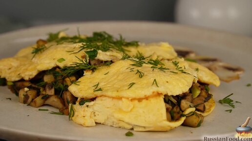 Восточный вкус завтрака. Омлет с грибами, луком и карри