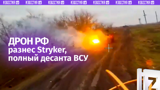 Оптоволоконный дрон разнес броневик Stryker, наполненный десантом ВСУ