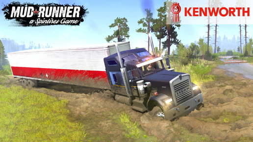 Грузовик вездеход KENWORTH W900 6x6 едет по бездорожью в Spintires MudRunner