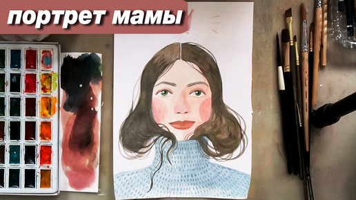 Как нарисовать стильный портрет мамы акварелью, пошаговый урок