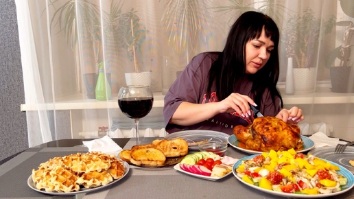 МУКБАНГ🍗🐓🍗У нас сегодня курочка и салат с морепродуктами🦑