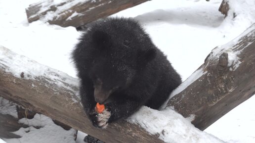 Уссурийский медвежонок кушает морковку. 14.11.2024