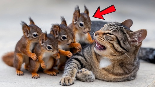 Крошечные Белочки, Потерявшие Свою Маму, Растут Вместе С Кошкой - Теперь Они Стали Неразлучны.