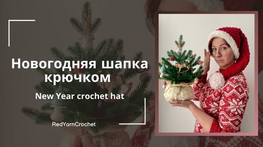 Новогодняя шапка крючком. Шапка Деда Мороза. Шапка на детский утренник крючком.
