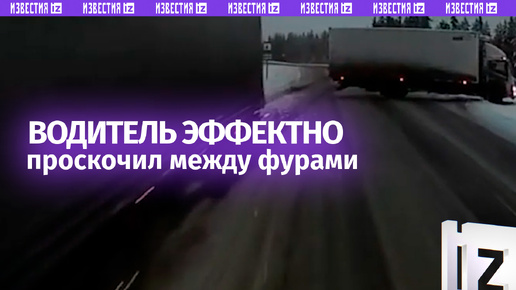 Между Сциллой и Харибдой: водитель большегруза филигранно проскочил между двумя фурами