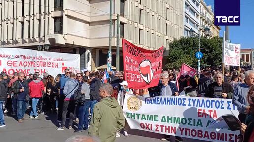 Тысячи человек пришли на митинги греческих профсоюзов в центре Афин