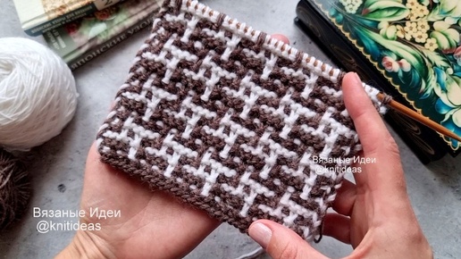 Ленивый жаккард спицами! Узор Куриная лапка
