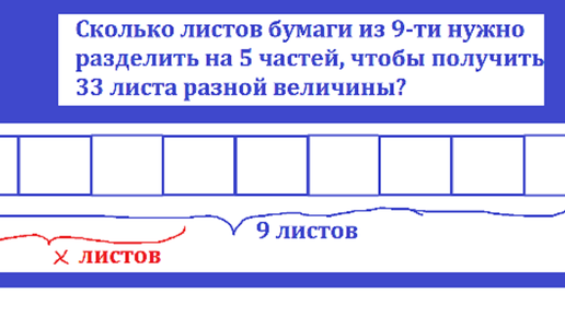 Сколько листов бумаги из 9-ти нужно разделить на 5 частей, чтобы получить 33 листа? Логическая задача