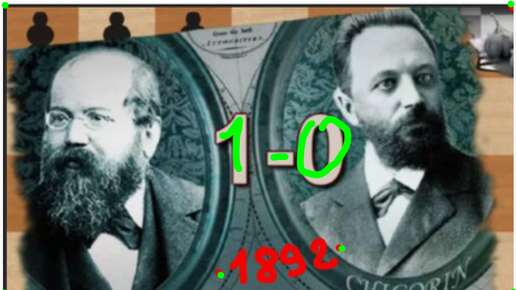 Лучшая партия ЧМ Вильгельма Стейница за всю шахматную карьеру: красивая жертва обеих ладей нашему Михаилу Чигорину за мат (Гавана, 1892)