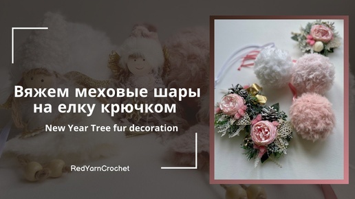 Меховые шары на новогоднюю елку крючком. Вязаное украшение на елку. Новогодний декор.