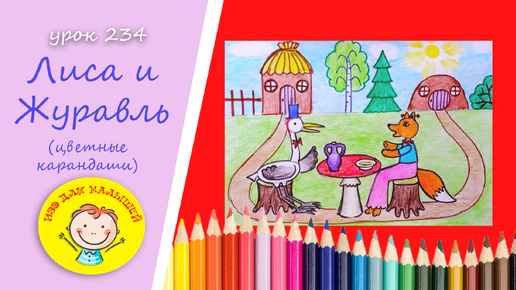 Как нарисовать ЛИСУ И ЖУРАВЛЯ. УРОК 234 Тема: "Лиса и Журавль"- цветные карандаши