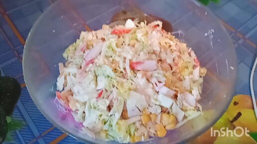 Салат из пекинской капусты, крабовых палочек и кукурузы