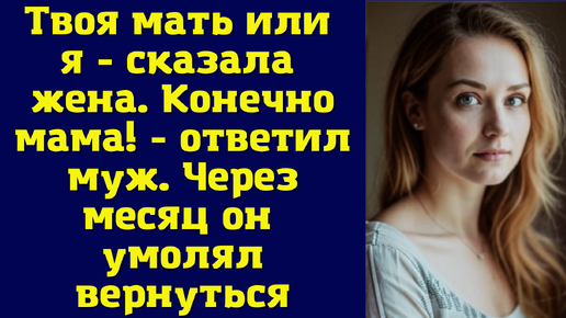 Твоя мать или я - сказала жена. Конечно мама! - ответил муж. Через месяц он умолял вернуться