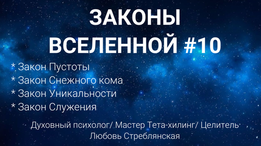законы вселенной № 10. Закон Пустоты/ закон Снежного кома/ закон Уникальности/ закон Служения