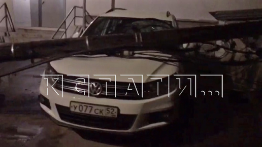 Сгнивший столб электропередач рухнул и раздавил автомобили
