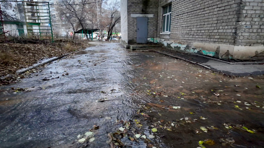 Потоп на территории заброшенного детского сада — прорвало водопровод в Самаре по адресу_ Перекопская, 17а.