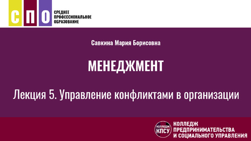 Менеджмент - Лекция 5. Управление конфликтами в организации