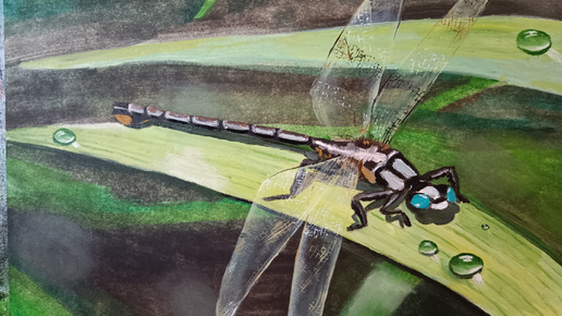 Пишем масляными красками Стрекозу. Какая польза от стрекозы? Видео релакс. Учимся писать капли воды, стрекозу.