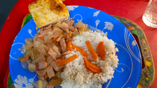 Мукбанг// Капуста Тушёная С Кальмаром, Рис,Сырная Лепёшка И Лимонад