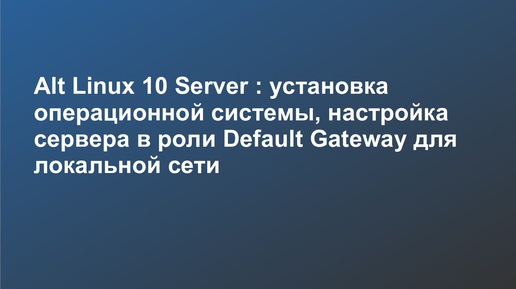 Alt Linux 10 Server : установка операционной системы, настройка шлюза в сеть internet