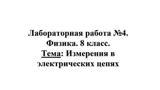 Лабораторная работа №4. Физика 8 класс. Тема: Измерения в электрических цепях
