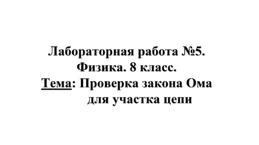 Лабораторная работа №5. Физика 8 класс. Тема: Проверка закона Ома для участка цепи