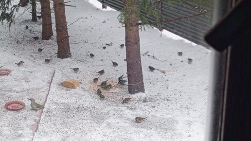 Семейство седых дятлов пожаловало. Карта на корм животным 2202 2062 6013 7323.