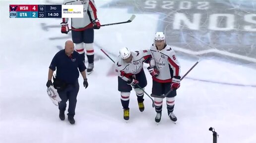 Александр Овечкин получил травму в третьем периоде матча с "Ютой" и покинул лёд с помощью доктора. Желаем здоровья нашей легенде!