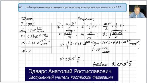 Физика ОК 030 Задача 1 Температура. Найти среднюю квадратичную скорость молекулы водорода при температуре 27 °С.