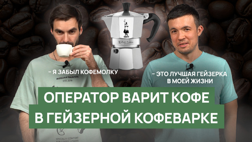 Оператор варит кофе в гейзерной кофеварке